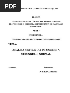 Analiza Sistemului De Ungere A Strungului Normal