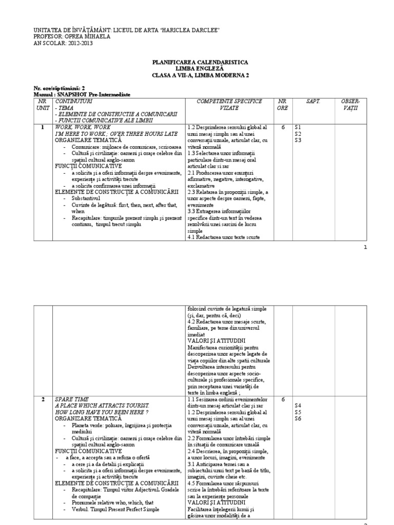 Planificare Clasa A Iiia Limba Moderna Engleza Ed Booklet