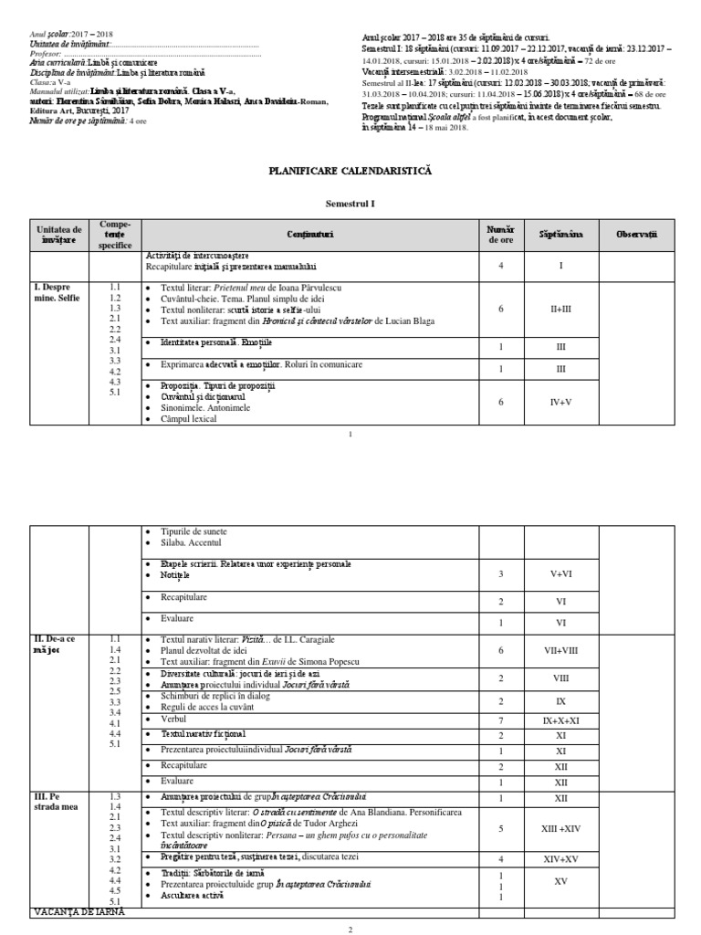 Planificare Limba Si Literatura Romană Clasa A Xi A Mada Madi 05 02 2012
