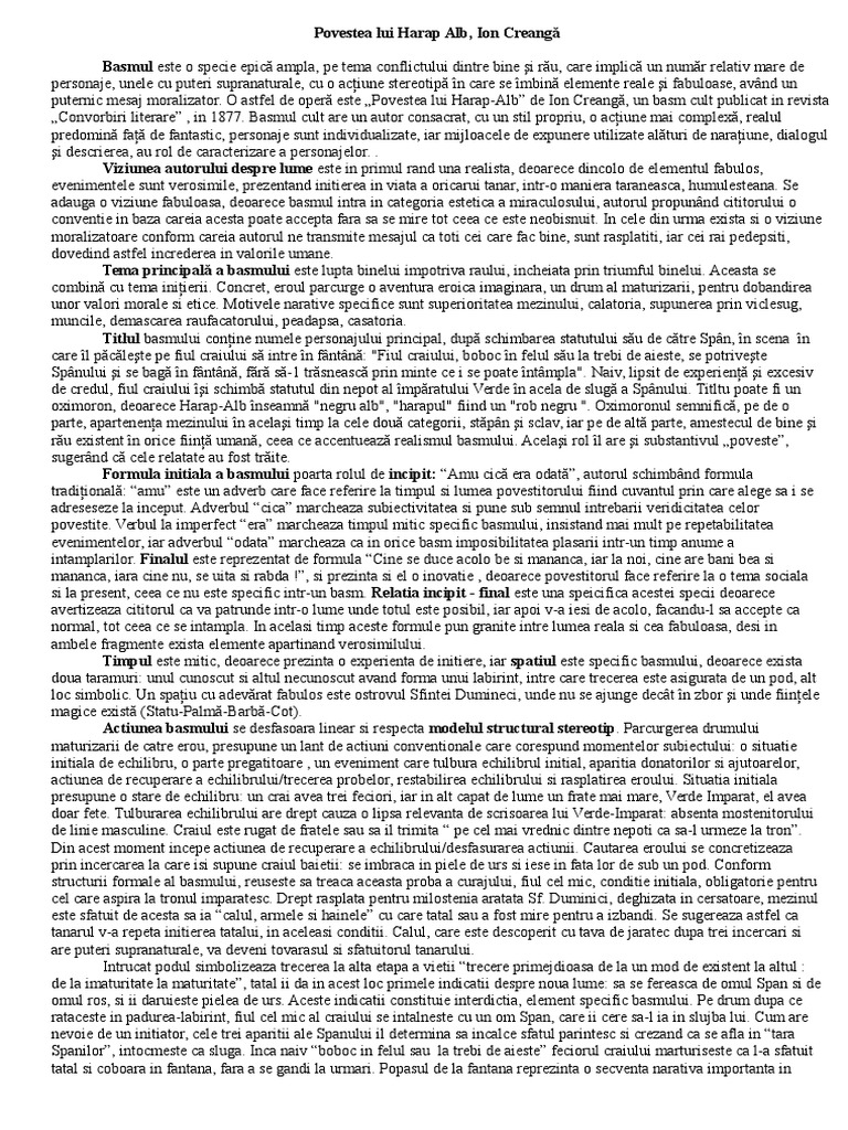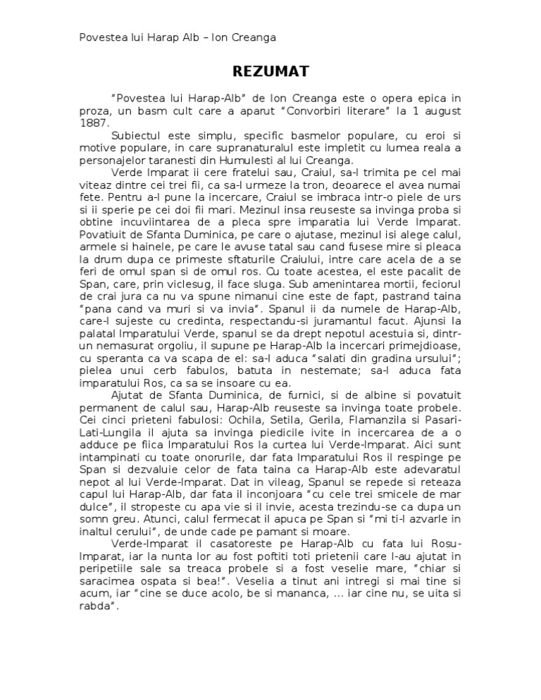 Povestea Lui Harap Alb De Ion Creangă Rezumat Mihai Dorian Academia Edu