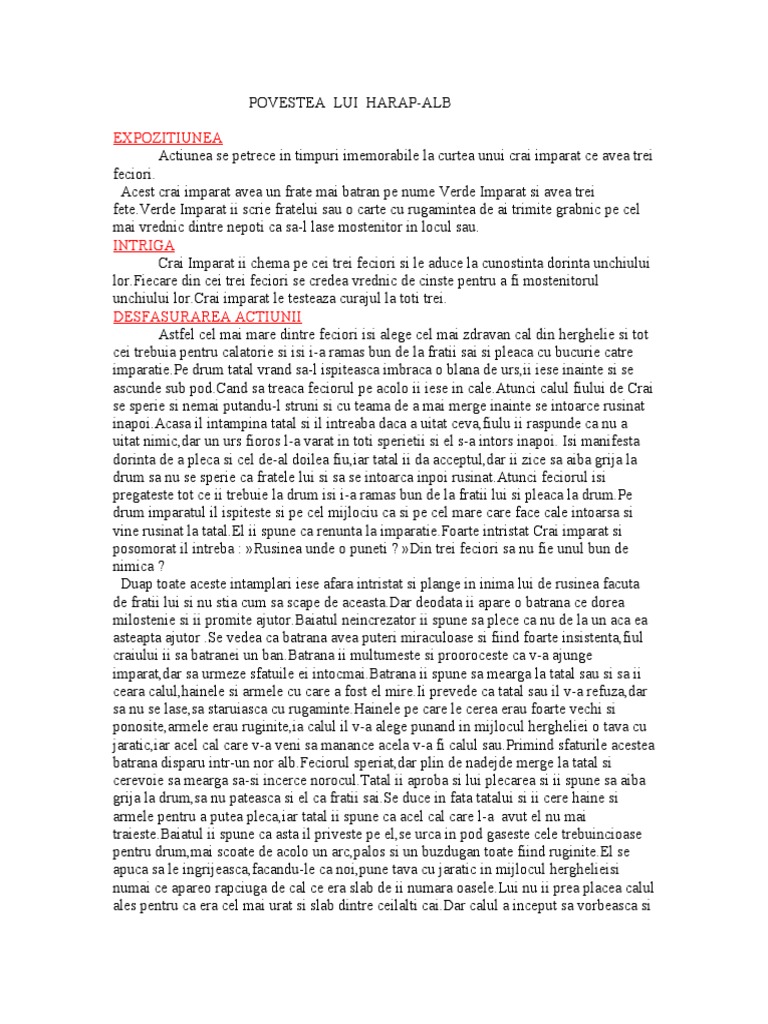 Www Referat10 Net Povestea Lui Harap Alb Momentele Subiectului