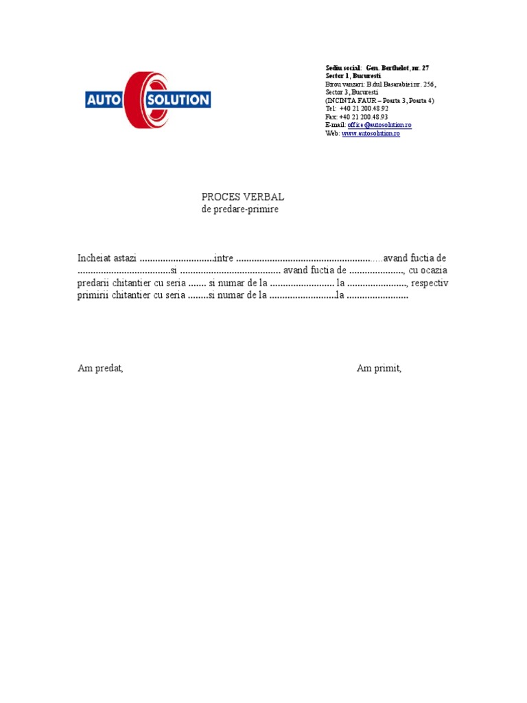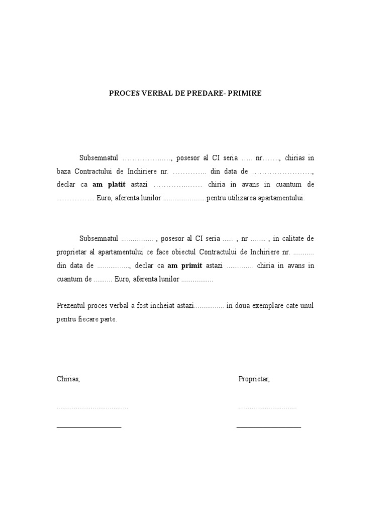 Proces Verbal Predare Act De Primire Predare Model