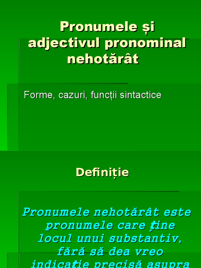 Pronumele Nehotărat și Adjectivul Pronominal Nehotărat E Pedia