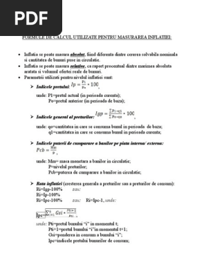 Anexa 1 Inflatie Formule De Calcul A Inflatiei