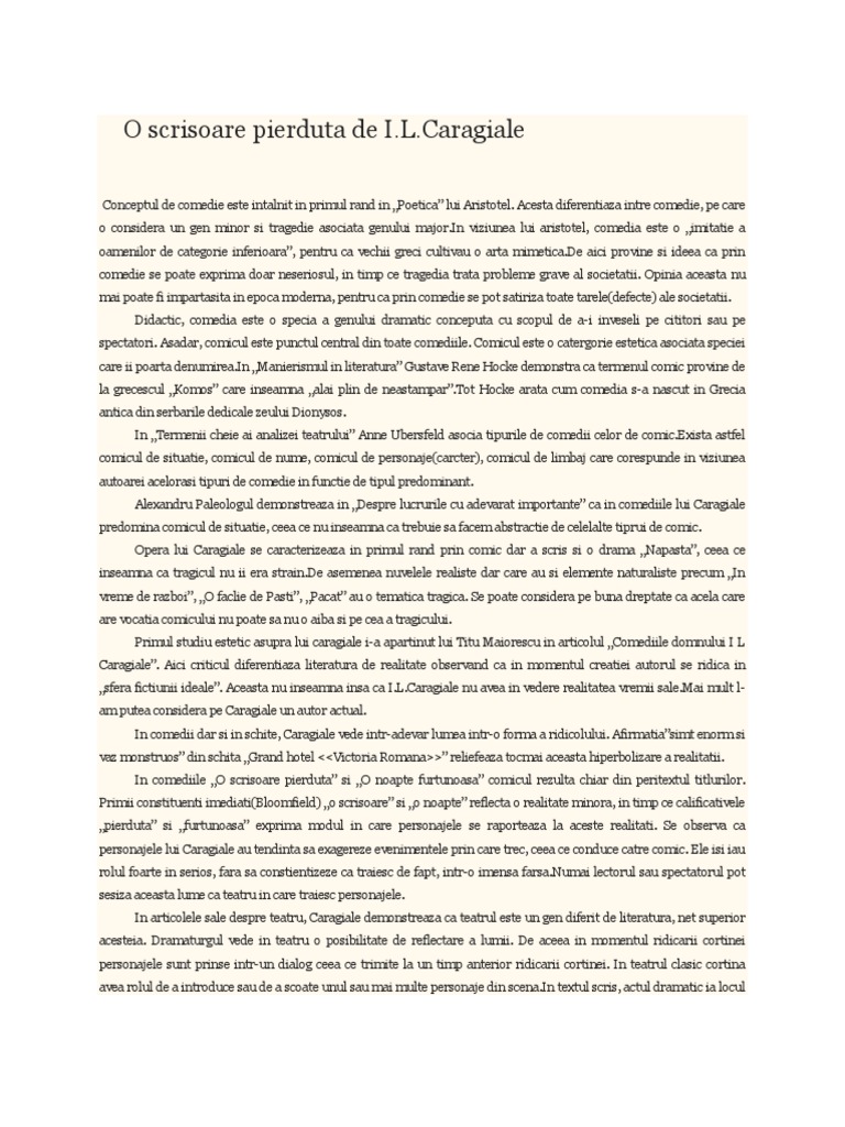 Doc O Scrisoare Pierdută De Ion Luca Caragiale 1 Comedia Elena Balan Academia Edu
