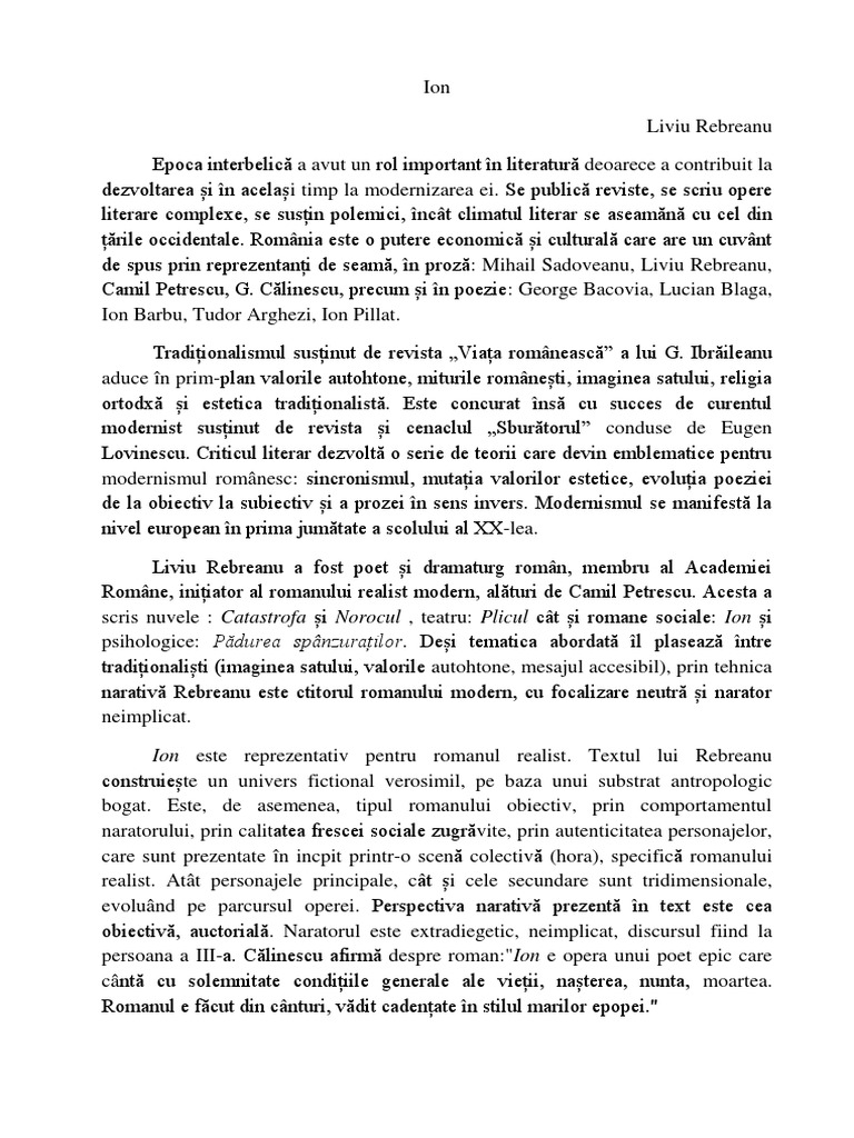 Ion De Liviu Rebreanu Rezumat Pe Capitole Docx Document
