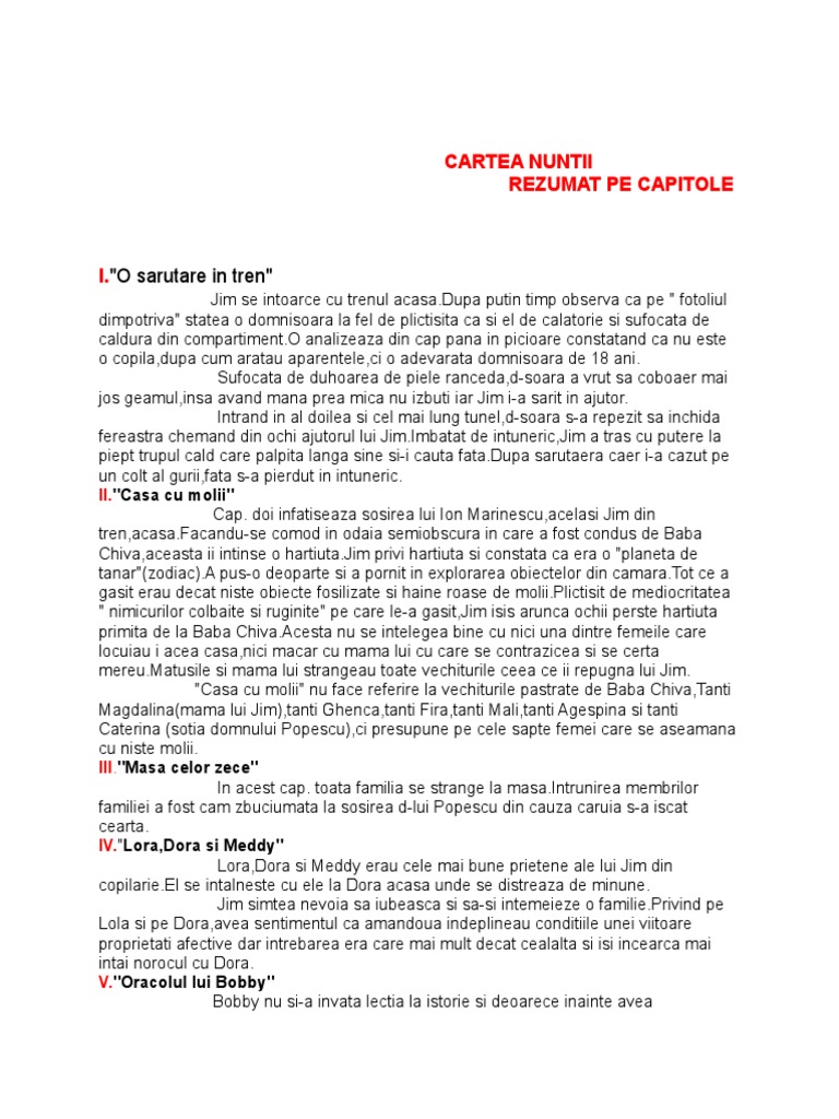 Cartea Nuntii Rezumat Pe Capitole