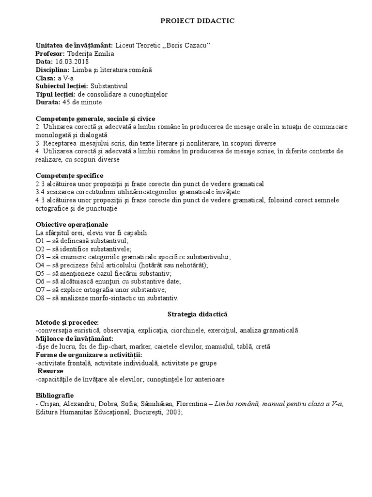 0 Proiect Didactic Substantivulconsolidare Cl 5