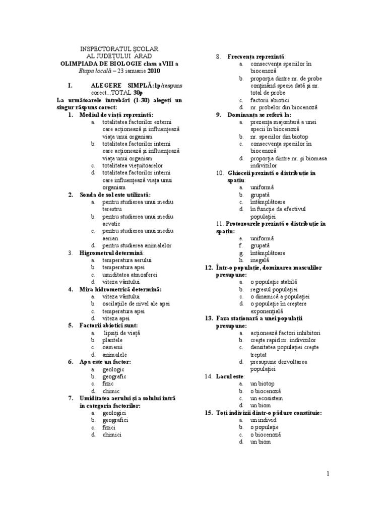 2010 Biologie Etapa Locala Subiecte Clasa A Viii A 0