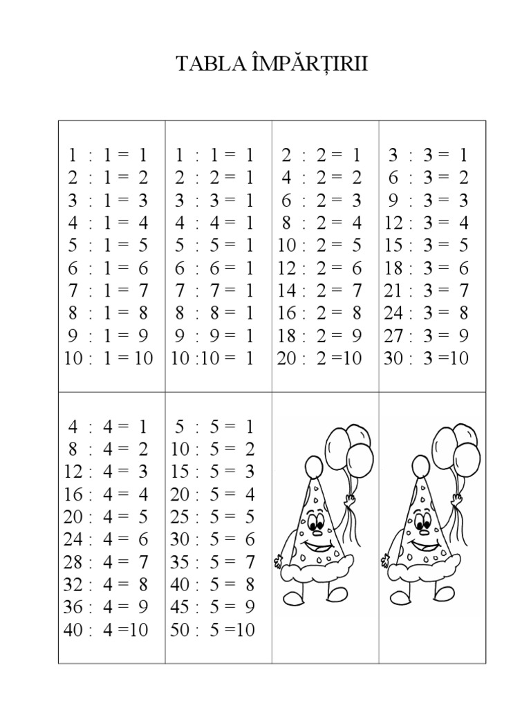 Tabla Impărțirii Planșe Pentru Impărțirea Numerelor