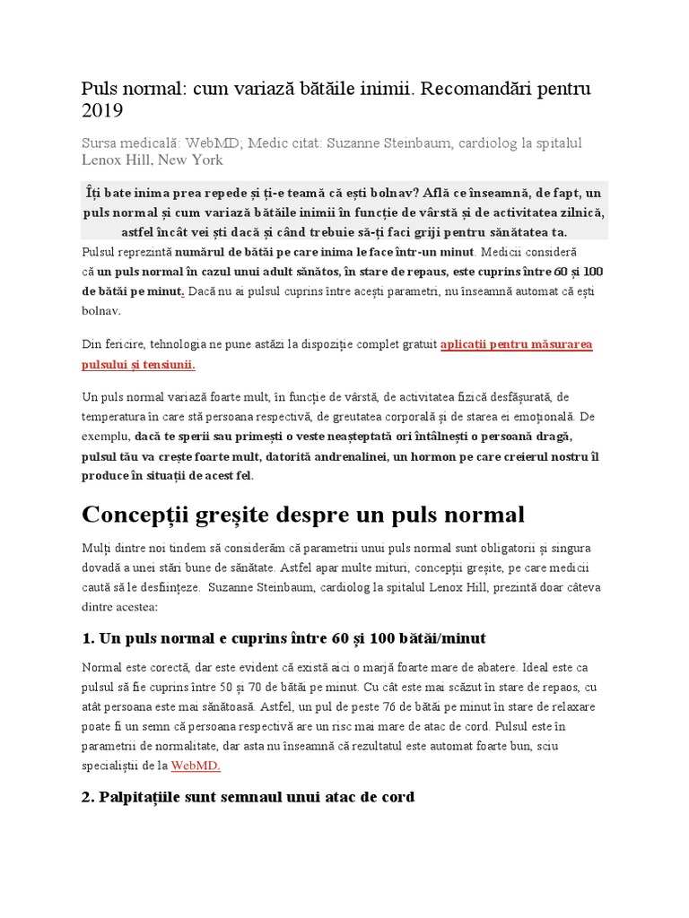 Puls Normal Cum Variaza Bataile Inimii Update 2020 Ehealth Romania