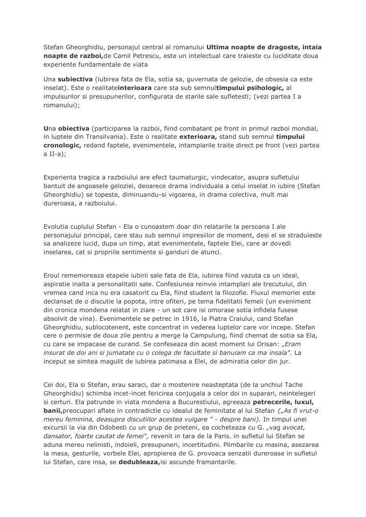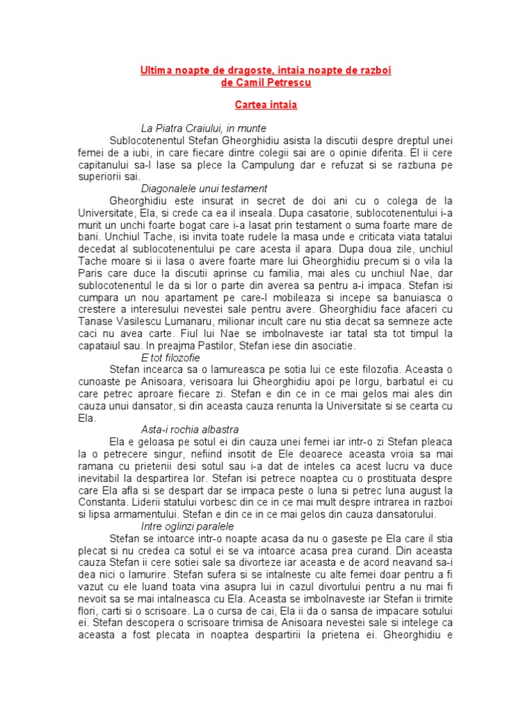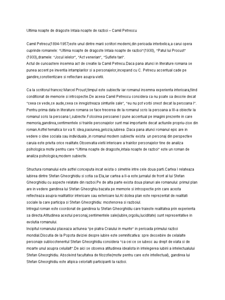 Camil Petrescu Ultima Noapte De Dragoste Intaia Noapte De Razboi 9 Www Top Referat Ro