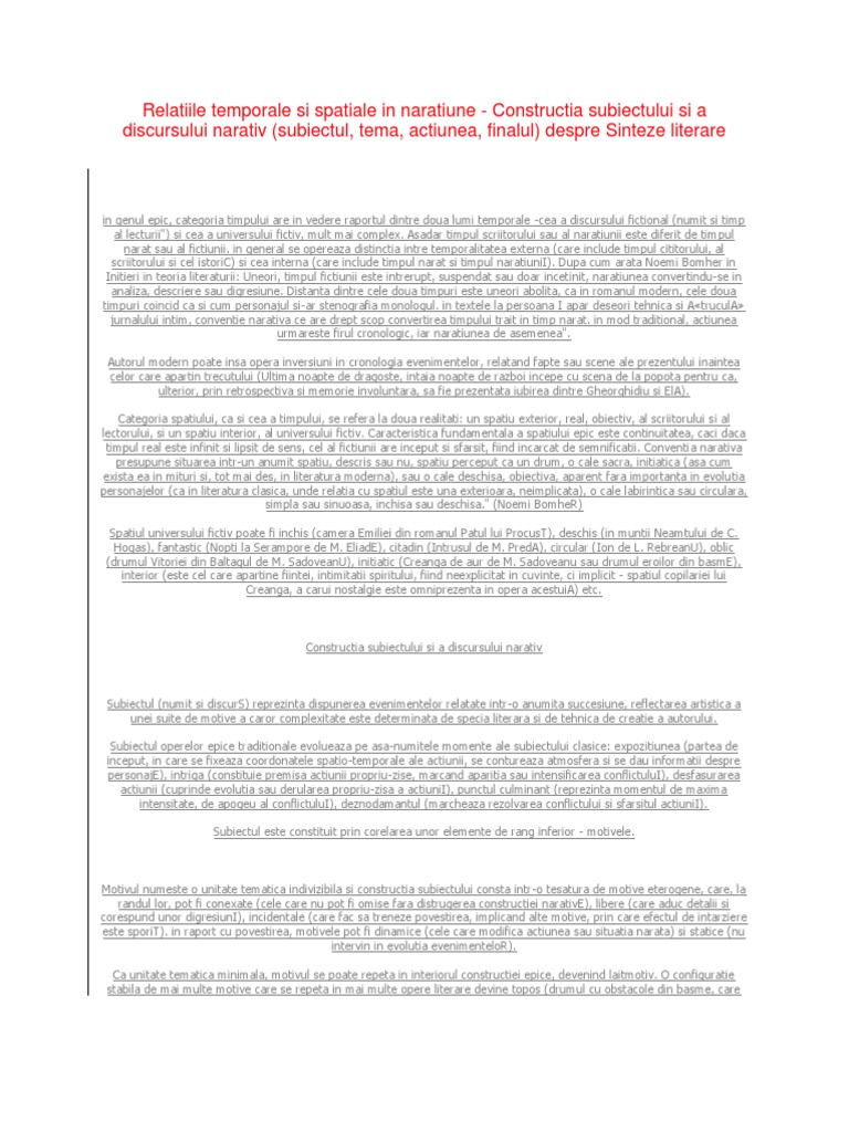Relatiile Temporale Si Spatiale In Naratiune