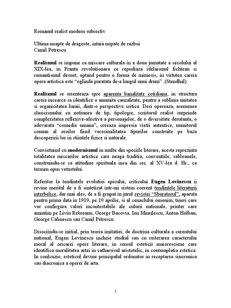 Referat Romanul Subiectiv Ultima Noapte De Dragoste Intaia Noapte De Razboi 150238 Graduo