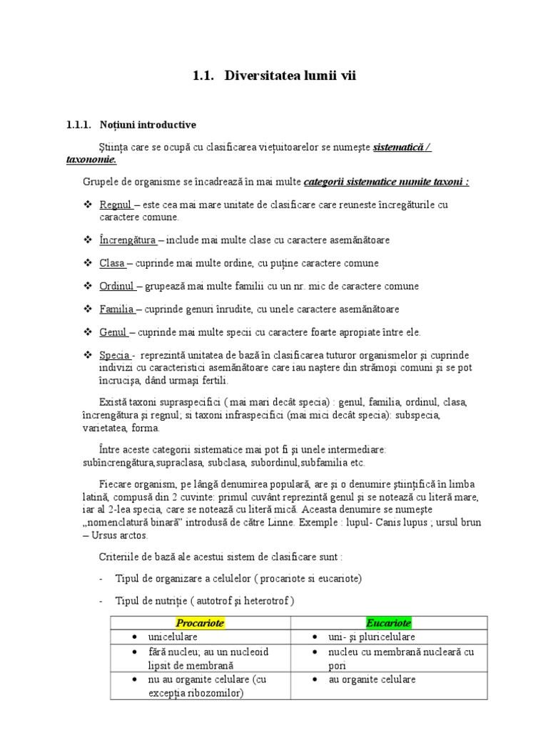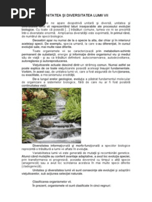 Unitatea Si Diversitatea Lumii Vii Doc Document