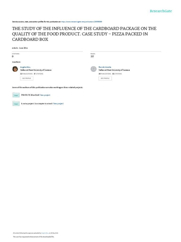 The Study Of The Influence Of The Cardboard Package On The Quality Of The Food Product Case Study Pizza Packed In Cardboard Box Life Cycle Assessment Employment