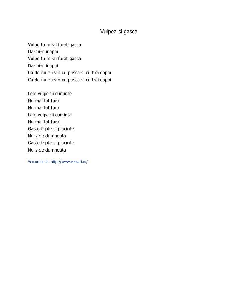 Jocuri Din Copilarie Vulpe Tu Mi Ai Furat Gasca Versuri Text